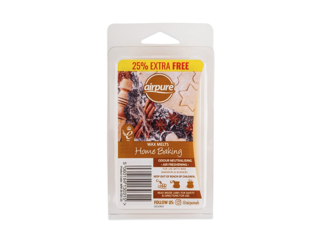 Create a cozy and sweet-smelling atmosphere at home with this quality wax from the Airpure brand weighing 86 g . The scent "Home Baking" evokes freshly baked Christmas treats, which exude warmth, nostalgia and coziness. The wax is designed for use in classic and electric aroma lamps and helps to effectively remove unwanted odors.