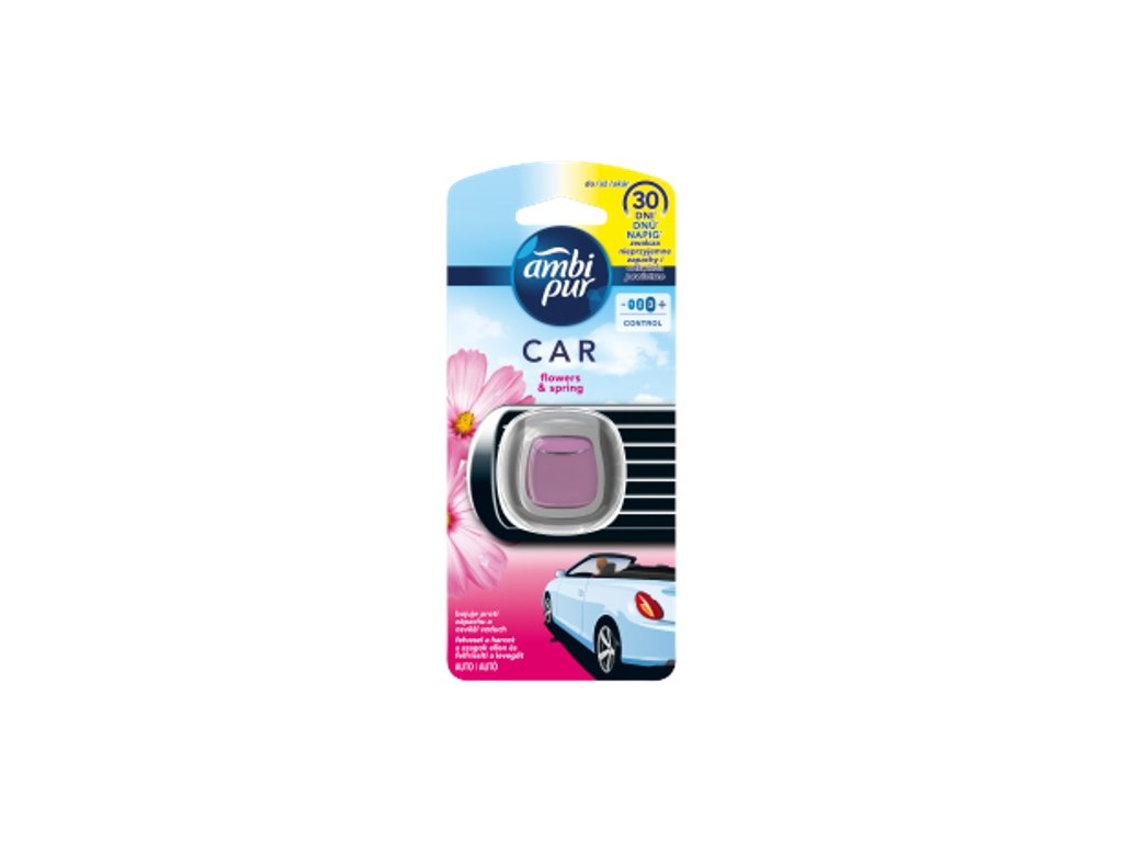 Ambi Pur Car air freshener with Odourclear technology continuously removes unpleasant lingering odors from your car and leaves a light, fresh scent for 30 days. The Flowers & Spring scent fills your car with a lively and refreshing scent that evokes the first rays of spring sunshine and budding new flowers. Unlike most other car air fresheners that mostly just cover up the odor, Ambi Pur Car actually eliminates odors and leaves behind a beautiful, fresh scent. It is a small, discreet air freshener that simply attaches to your car's air conditioning. Thanks to the new and unique Odourclear technology, it will freshen up your car and get rid of even the most persistent odors, such as food, pets, smoke or garbage. There is a scale on the side of the device where you can even adjust the intensity of the scent. Ambi Pur Car air freshener is easy to use, requires no batteries or electricity, and lasts up to 30 days so you and your passengers can breathe comfortably.
