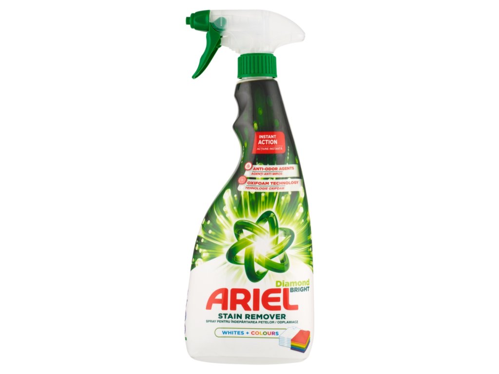 Does your regular detergent fail to remove more stubborn stains and do you want to solve it once and for all? ARIEL stain remover is one of the most effective products in the fight against stains. It can even remove oil, grass and sweat stains. The recommended washing temperature when using it is 30 °C, at this temperature it has the best results. If we talk about the method of application, ARIEL Diamond Bright stain remover spray for stains 750 ml should be applied to the stains before washing. You can expect 750 ml of effective stain remover in the package .