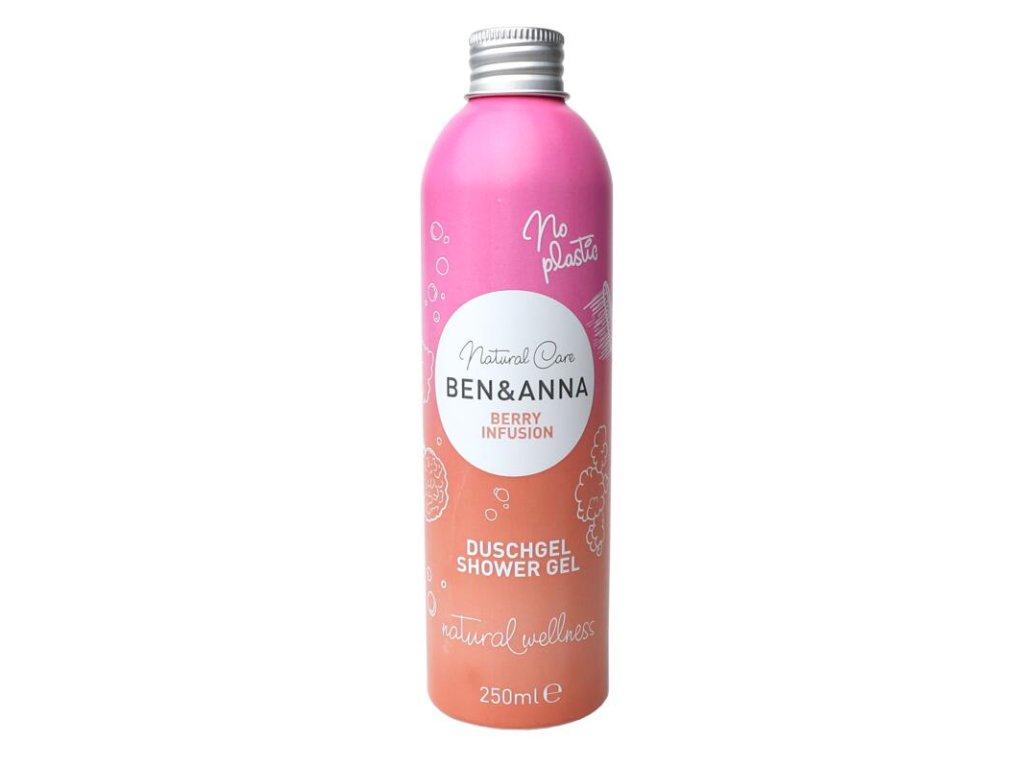 Shower gel Enjoy the fruity freshness of BEN&ANNA Berry Infusion shower gel. With its sweet fruity scent, it refreshes the skin and provides a refreshing shower experience. Gentle cleansing: pH-neutral formula for sensitive skin. Refreshes and gently cleanses. Sustainable packaging: Recycled aluminum for ecological care. Not tested on animals, does not contain PLASTIC, suitable for VEGAN. In addition, the Ben&Anna brand also supports the One Earth – One Ocean organization, whose initiative is to clean the ocean from plastic waste. Ben&Anna is proud of the VEGAN, NATRUE, ICADA certificates.Additional parameters