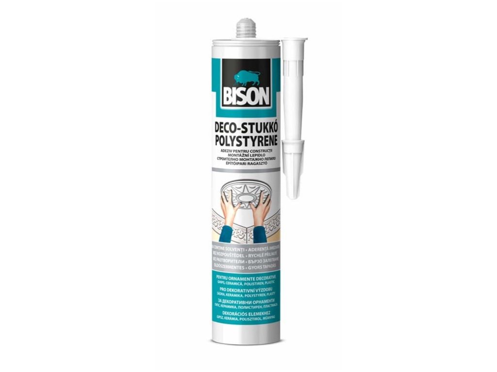 Polystyrene assembly adhesive. Ideal for gluing all types of polystyrene objects that require quick adhesion to porous surfaces. It does not damage the material, is solvent-free, adheres directly with the possibility of correction. It is flexible. It is applied on one side and is easy to work with. SCOPE OF USE: For decorative decoration, polystyrene, plaster, ceramics, plastics. INSTRUCTIONS FOR USE: The substrate must be porous, flat, clean and dry. Gluing tiles or slabs: apply the adhesive in points to all 4 corners and in the middle, at a distance of about 30 cm. For tiles or slabs smaller than 40 x 40 cm or thicker than 1 cm, apply the adhesive in several places. Then place the slab or tile in the correct place and press firmly. IMPORTANT: Use in the temperature range +5°C to +40°C. After use, close the packaging properly and store it in a dry, cool place protected from frost. The minimum shelf life is 24 months.Additional parameters