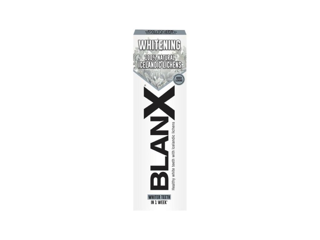 Based on Arctic lichens Non-abrasive whitening toothpaste based on Arctic lichens for everyday use. Natural and scientific research for healthy and naturally white teeth - The first protective toothpaste based on Arctic lichens that restores the natural white color of teeth. Exceptional composition: Arctic lichen extract is bacteriostatic, acts against dental plaque and caries Extremely fine silica deeply cleans and is non-abrasive Fluorides strengthen tooth enamel, making it more compact and radiant The package contains a special tooth shade sampler "BlanXometr", which will help you determine the shade of your teeth before and after whitening. You can get it by cutting it off the inside of the box. Warning: If you have small wounds or ulcers in your mouth, we recommend not using this toothpaste until they heal. Contains sodium fluoride 0.08%. Children under 6 years of age should brush their teeth only under parental supervision. More in the package leaflet.Additional parameters