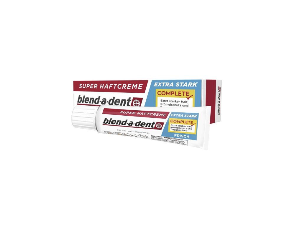 Blend-a-dent Extra Stark is a fixation cream with an extra strong effect , which ensures a firm hold of the denture all day long. Thanks to its balanced formula, it provides long-lasting stability, comfort and protection against the penetration of food residues under the prosthesis.