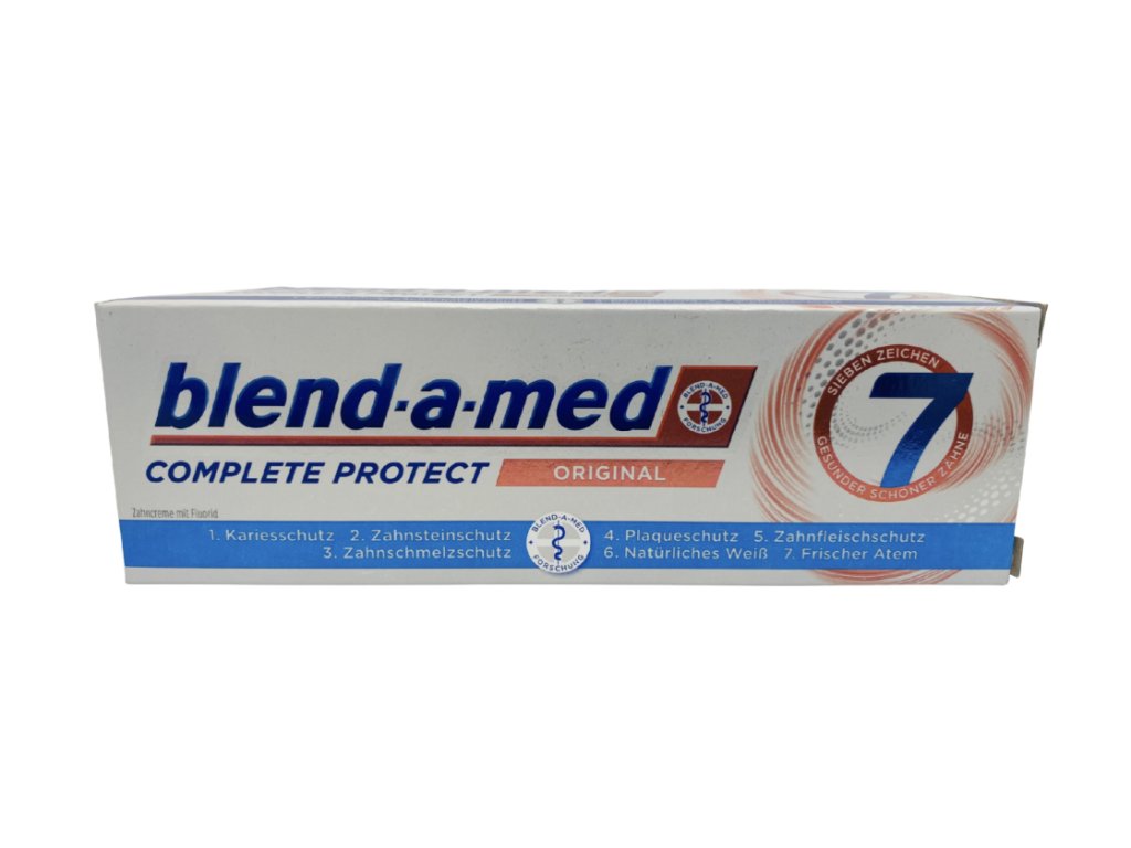 Blend-a-Med Complete Protect 7 Original is a toothpaste designed to provide comprehensive care for everyday oral hygiene needs. The formula is optimized to protect teeth, gums and enamel – so it’s not just about routine cleaning, but about total care. The toothpaste helps remove plaque and surface stains, strengthens enamel , and leaves you with fresh breath that lasts.