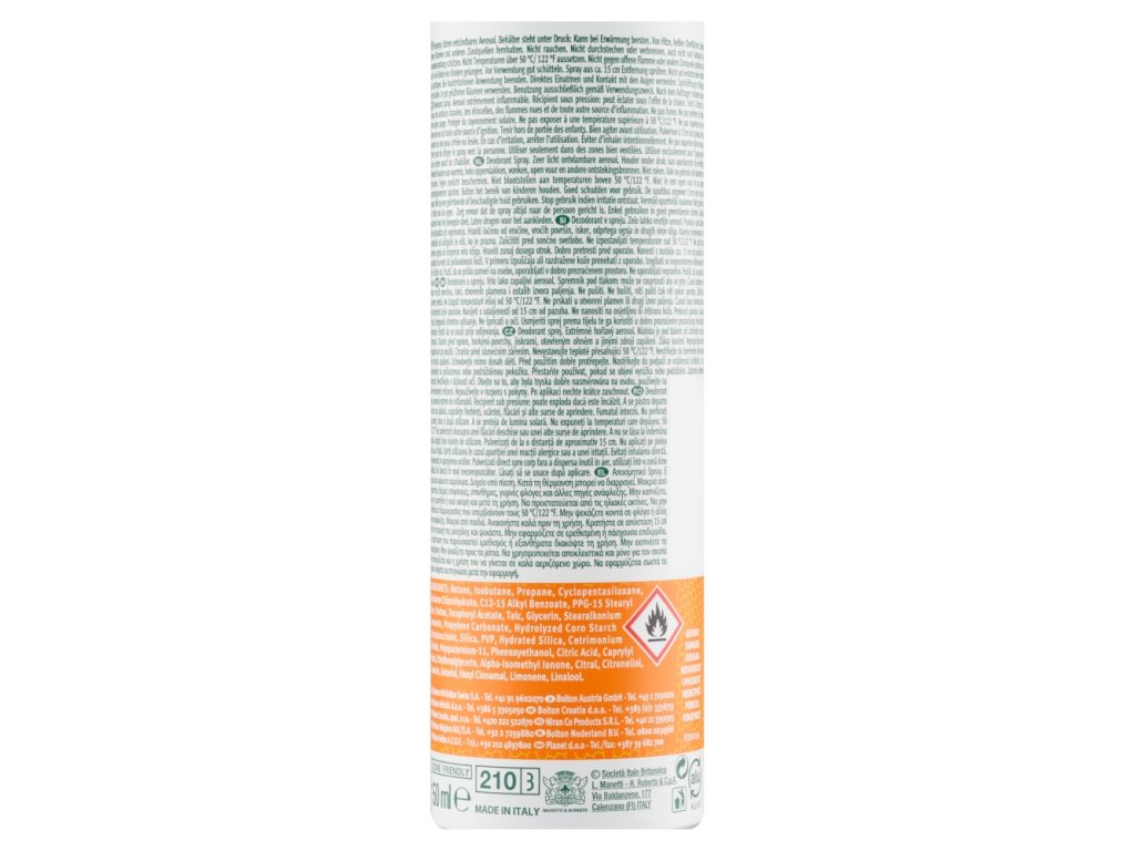 | Preparation and usage: | Shake well before use. Spray into the armpits from a distance of approximately 15 cm. After application, allow to dry briefly. |