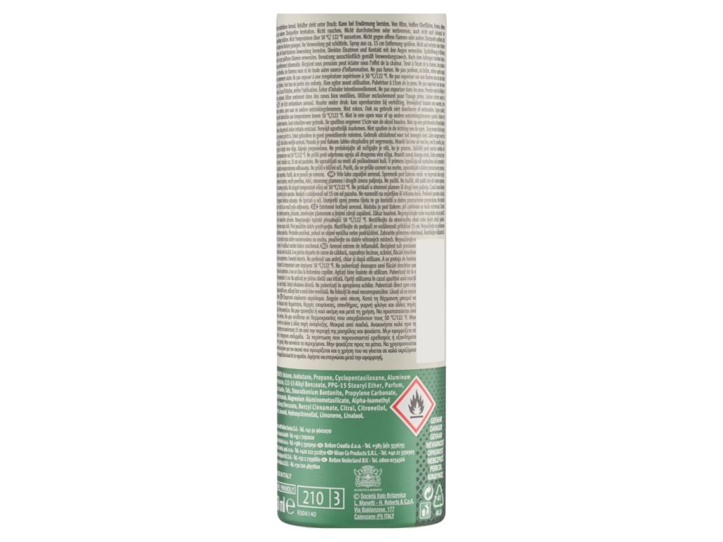 | Preparation and usage: | Shake well before use. Spray into the armpits from a distance of approximately 15 cm. After application, allow to dry briefly. |