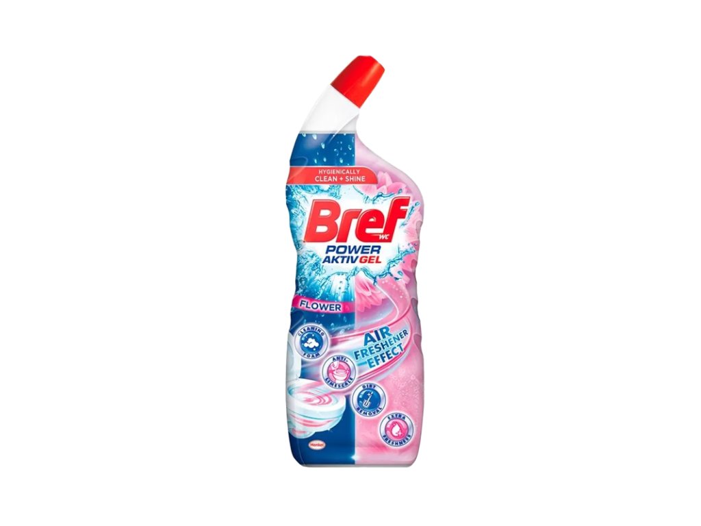 | Preparation and usage: | Use: The practical bottle for better handling with a long rounded neck simplifies cleaning under the rim of your toilet. Simply apply the gel under the rim, let it work (for a thorough removal of large deposits and dirt, leave it to work for 30 minutes), use a toilet brush to remove any remaining dirt and then flush. Avoid splashing the toilet seat, floor or other sensitive surfaces. For perfect cleanliness and freshness of your toilet, use Bref Power Aktiv Gel at least once a week in combination with Bref toilet blocks for daily care. Child-resistant closure: Opening: press the lid on both sides and turn to the left. Closing: Turn gently until it clicks. Use: Apply the cleaner directly under the rim of the toilet bowl. To remove stubborn deposits and dirt, leave it to work for 30 minutes. To remove heavy deposits, use a toilet brush. If spilled on toilet seats, floors or acid-sensitive surfaces, rinse immediately with plenty of water to prevent damage or discoloration. |