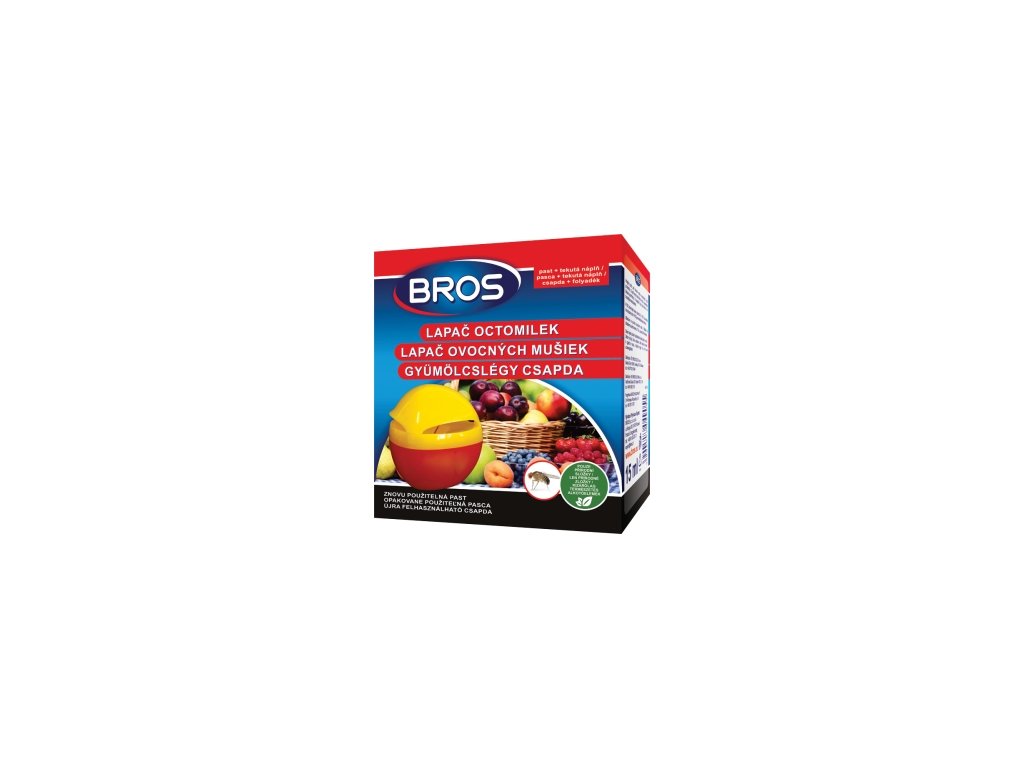 The BROS fruit fly trap is suitable for hanging. It can be used both to monitor the occurrence of flies and to reduce their occurrence.