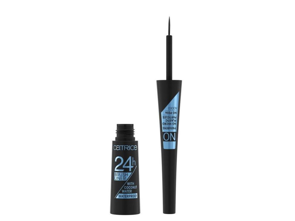 Water and sweat resistant The combination of precise application and valuable care without parabens, microplastics and PEGs is offered by the new WATERPROOF 24H Brush Liner eyeliner. Thanks to the flexible and soft brush, you can apply a dark black line in one precise stroke, so creating fine lines, a cat look or an extravagant shape is a breeze! The vegan formula contains hydrating coconut water and leaves a matte look on the eyelid. The lines last 24 hours!Additional parameters
