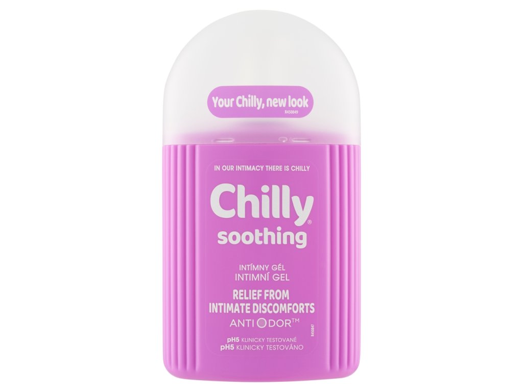 Chilly intimate gel Soothing 200 ml with natural ingredients for a feeling of freshness pH5 clinically tested Chilly Intima intimate hygiene gel Soothing respects the natural pH of the skin and mucous membranes, protects and soothes them. Thanks to the improved composition that neutralizes odor molecules, it provides a long-lasting feeling of freshness. Chilly Intima intimate hygiene gel Soothing is especially suitable for women with sensitive skin and mucous membranes.