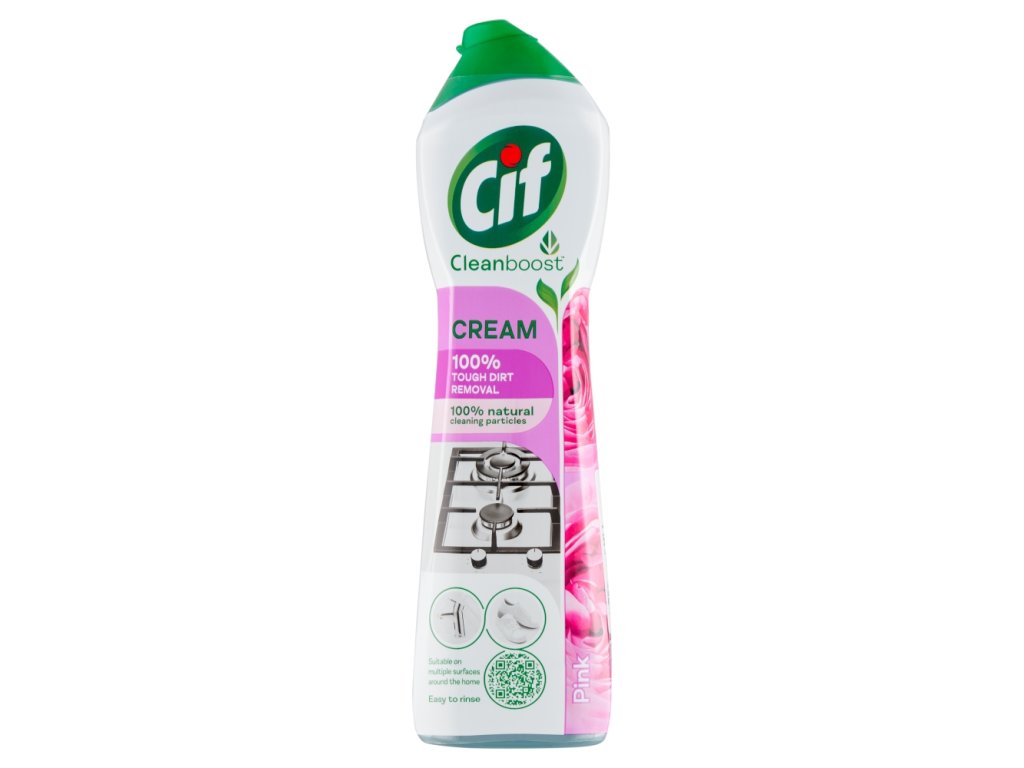 Cif Cream Pink is a creamy abrasive cleaner with a pleasant floral scent. It easily loosens dirt and cleans even seemingly uncleanable surfaces throughout the house, including modern surfaces.