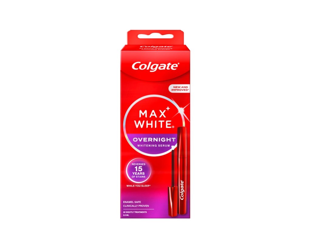 | Preparation and usage: | Colgate Whitening Serum is very easy to use in 5 simple steps: 1. BRUSH and rinse your teeth. 2. DRY your top teeth with a tissue. 3. APPLY one thin layer to your top teeth and wait 15 seconds for it to dry. A little goes a long way. You only need one layer for each tooth. 4. REPEAT the process on your bottom teeth. 5. WHITENING WHILE YOU SLEEP while you sleep and brush away the serum in the morning. |