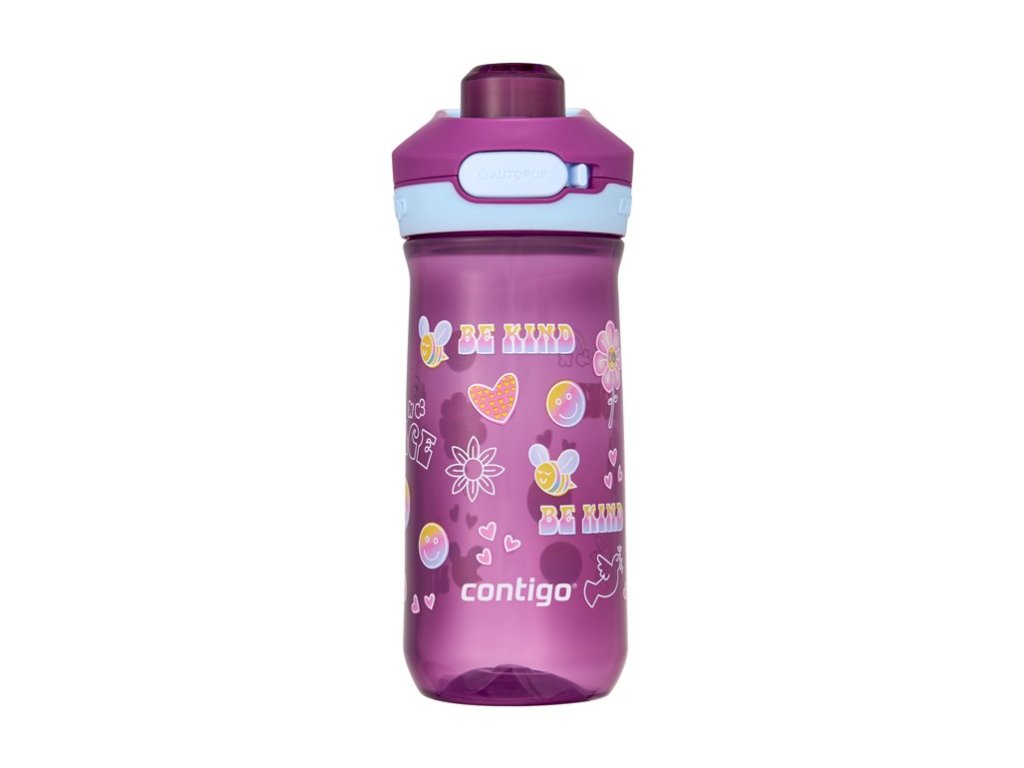 The Contigo baby bottle with AUTOPOP technology is designed to minimize the risk of spills and leaks. The bottle has a practical handle for easy carrying and a protective cap cover that protects against dirt and grime. The lid and body can be washed in the top rack dishwasher. Push-button lock for greater security not only on the go. Suitable for most car and bicycle cup holders. Made of polypropylene plastic. In the open position, the product is not spill-proof, so we recommend carrying it in an upright position.Additional parameters