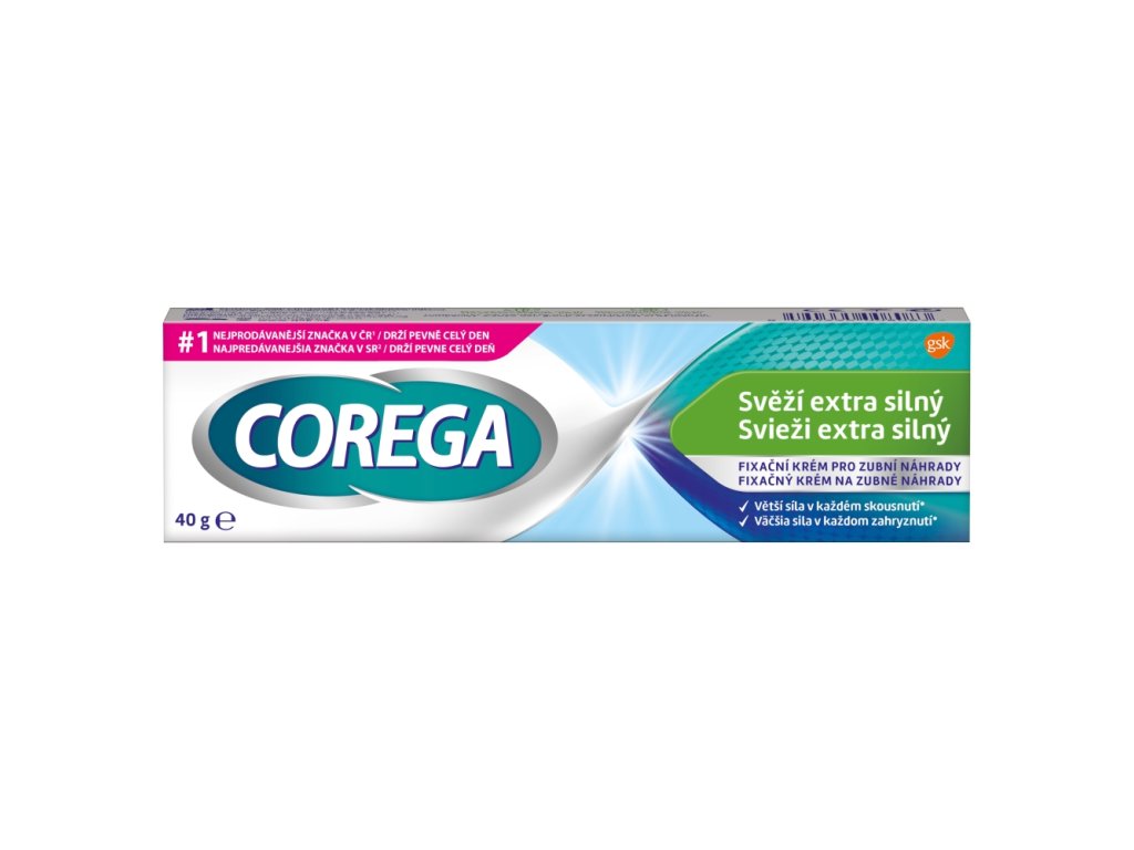 If you are looking for a fixing cream that will provide you with a 3D firm hold with extra freshness - COREGA Fresh extra strong is part of the line of fixing creams for dentures without zinc . Thanks to its composition, it offers you an all-day firm hold and an extra dose of freshness with mint flavor, so you can get extra close.