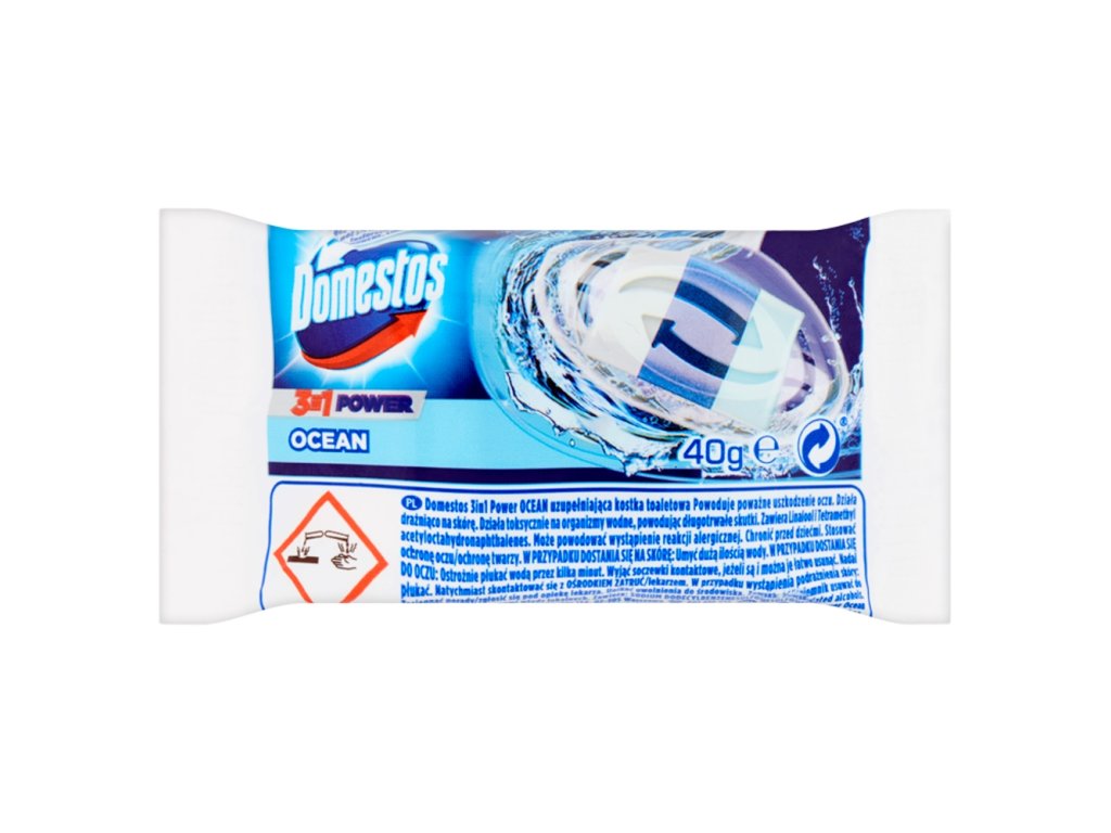 | Safety warning: | DANGER. Domestos 3 in 1 Power Ocean solid toilet block - refill. Causes serious eye damage. Irritating to skin. Harmful to aquatic life with long lasting effects. Contains linalool, 1-(1,2,3,4,5,6,7,8-octahydro-2,3,8,8-tetramethyl-2-naphthyl)ethan-1-one. May produce an allergic reaction. Keep out of reach of children. Wear safety glasses/face shield. IF ON SKIN: Wash with plenty of water. IF IN EYES: Rinse cautiously with water for several minutes. Remove contact lenses, if present and easy to do. Continue rinsing. Immediately call a POISON CENTER/doctor. If skin irritation occurs: Get medical advice/attention. Avoid release to the environment. Contains: sodium dodecylbenzenesulfonate, ethoxylated alcohols. |