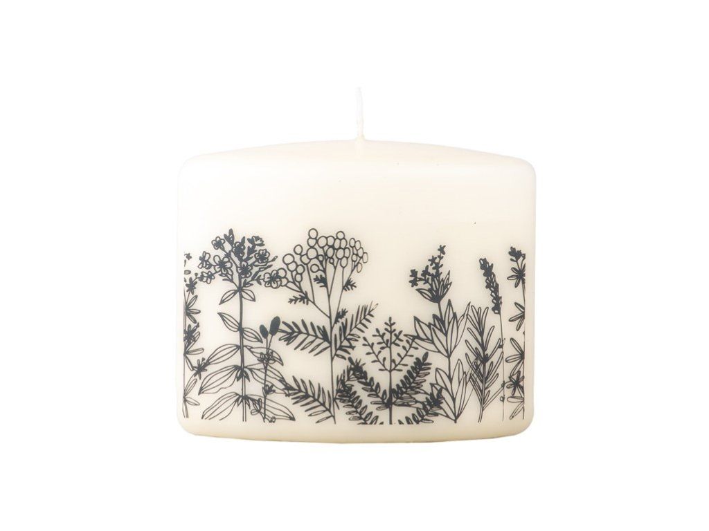 An ellipse-shaped candle in ivory with a floral motif. The elegant combination of color and floral motif is ideal for any occasion that deserves a delicate touch of beauty. Its dimensions are 120x55x95 mm.Additional parameters