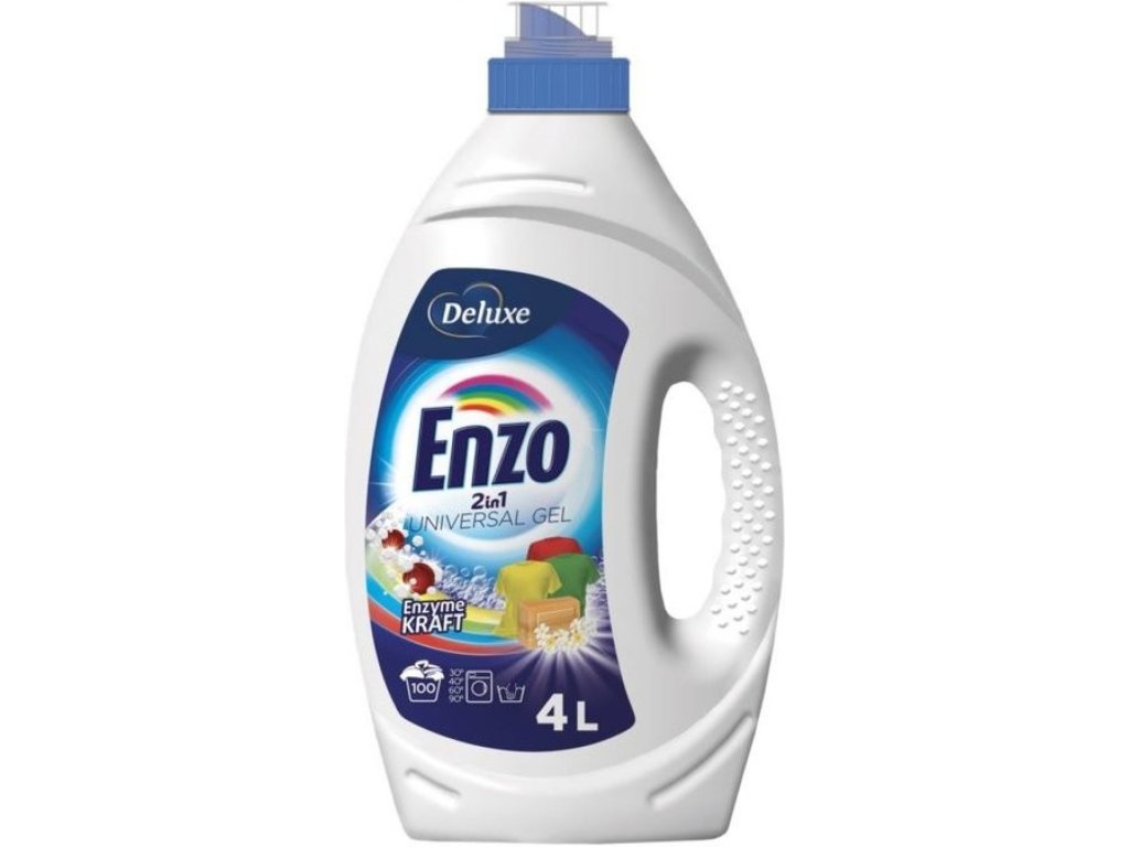 Deluxe Enzo washing gel UNIVERSAL is a liquid detergent for washing colored and white laundry. It is recommended for washing clothes made of natural and synthetic fibers, for use in all types of washing machines and for hand washing. Subtle fresh scent.
