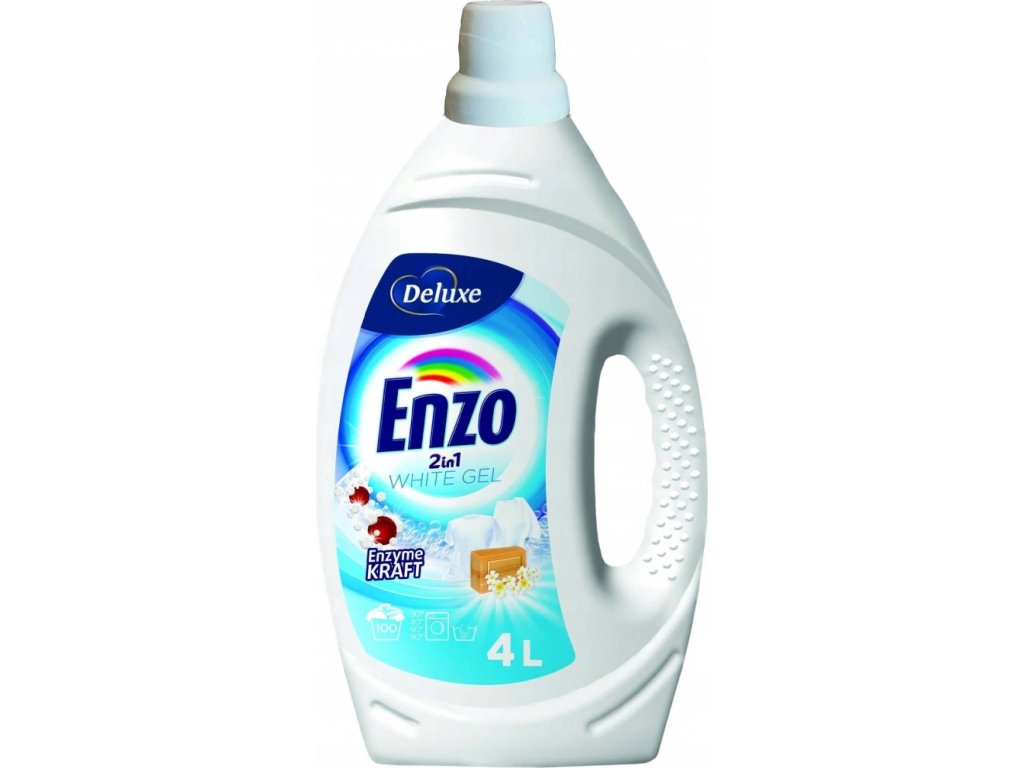 Enzo Deluxe White is a liquid laundry detergent specially developed for washing white laundry. It reliably removes dirt and stains, helps maintain the bright white color of the fibers and gives the laundry a fresh, clean scent. It is suitable for washing clothes made of natural and synthetic fibers in all types of washing machines and for hand washing.