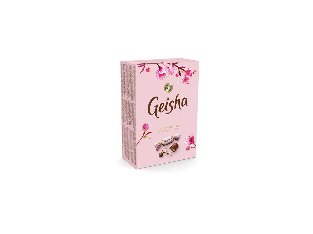 Milk chocolate candies with hazelnut and nougat filling (38%).