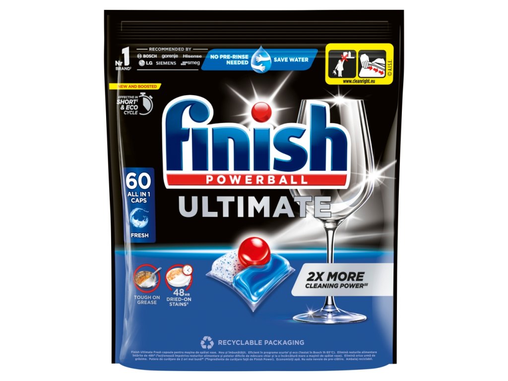 | Safety warning: | Finish Ultimate Dishwasher Capsules - Fresh. WARNING. Causes serious eye irritation. Irritating to skin. Contains subtilisin. May produce an allergic reaction. If medical advice is needed, have product container or label at hand. Keep out of reach of children. IF IN EYES: Rinse cautiously with water for several minutes. Remove contact lenses, if present and easy to do. Continue rinsing. If eye irritation persists: Get medical advice/attention. IF ON SKIN: Wash with plenty of soap and water. Do not consume. If swallowed, seek medical advice. |
