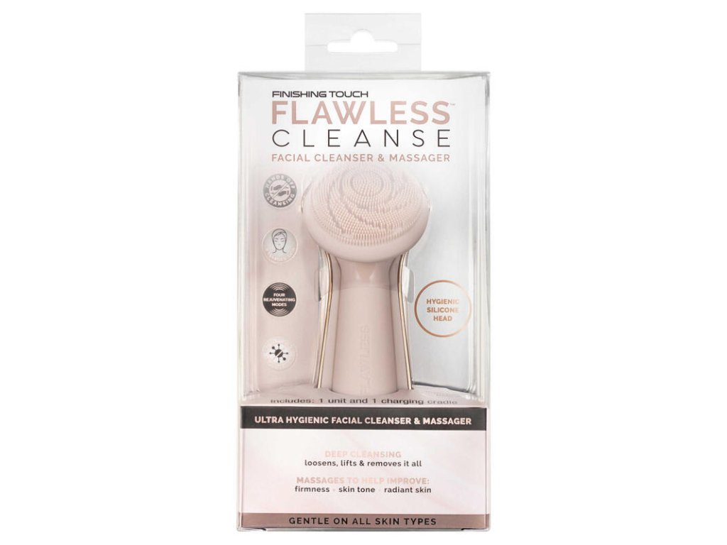 For even more radiant skin! Flawless Finishing Touch Cleanse is a hydro-vibrating facial brush that supports collagen production, stimulates blood circulation and helps to improve the overall complexion. It has four modes: gentle, pulsating, massage and deep cleansing. Rechargeable and fully waterproof, so it is also suitable for showering. Use: Wet your face and rinse the unit with hot water. Apply your favorite skin cleansing product to the brush. Place it on your face and turn on the ON button. Use modes 1 and 2 to cleanse. Move the brush over your face in circular motions and with gentle pressure. Turn off the brush, rinse your face and brush and dry. Apply your favorite serum to the brush and use the brush in massage modes 3 and 4. Turn off and rinse the brush, dry.Additional parameters