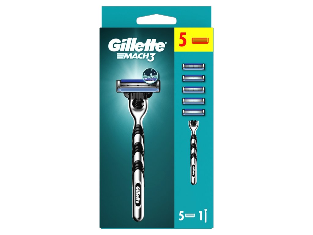 The package contains a Gillette Mach3 complete razor including 5 heads.
