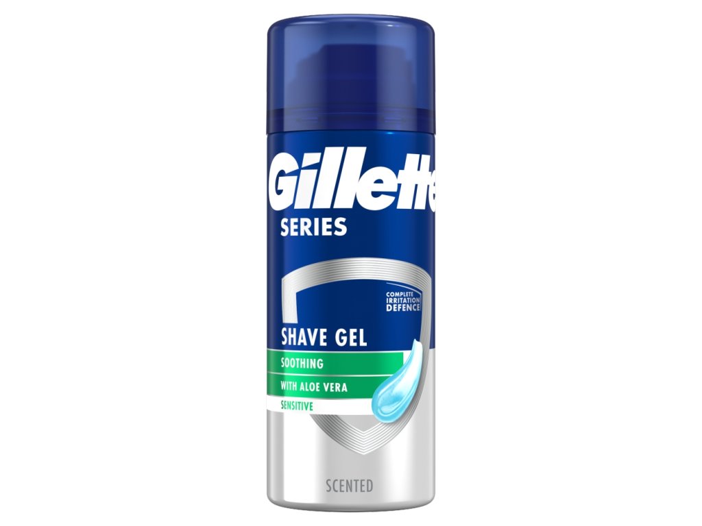 Shaving gel provides better protection against minor cuts, redness and skin tightness. Gillette Series Sensitive Skin protects the skin with a soothing touch of aloe vera . Three effective moisturizers improve the glide of the razor.