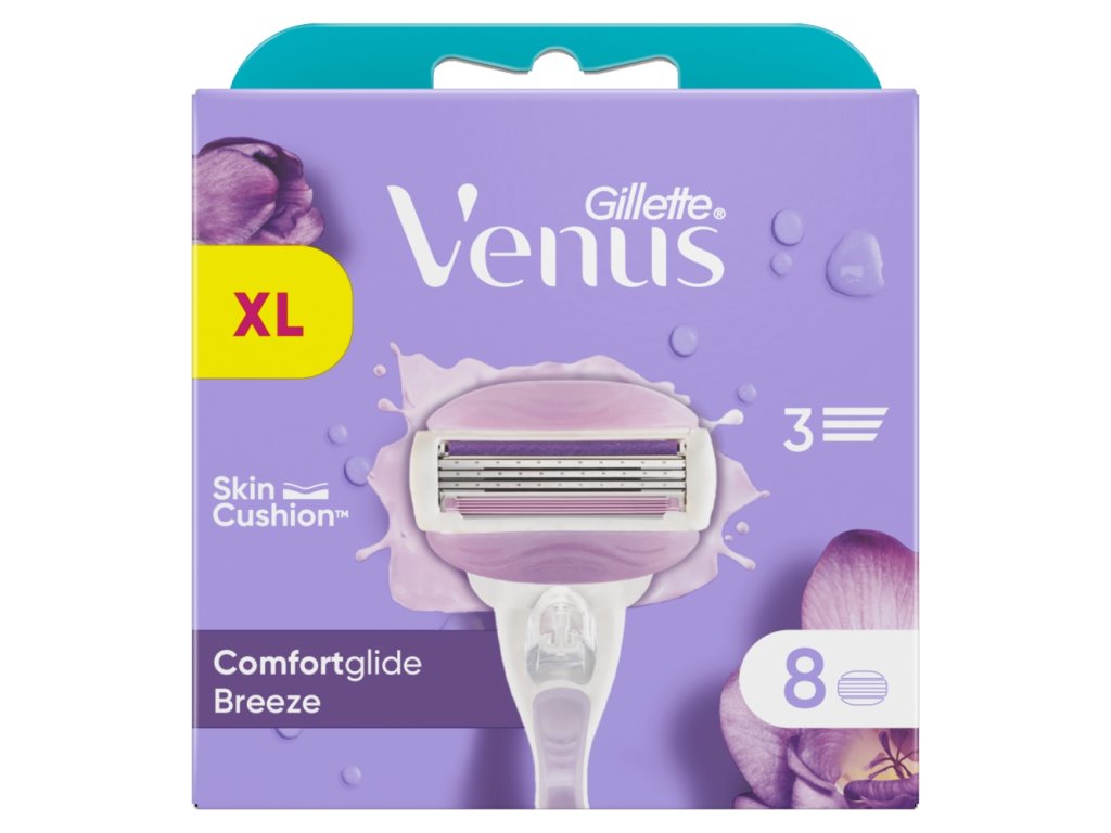 Treat your skin to the comfort of the Gillette Venus ComfortGlide Breeze women's razor. With 3 contouring blades and built-in shaving gel strips that release fresh, freesia-scented body butters for an incredible glide, comfort and shaving experience.