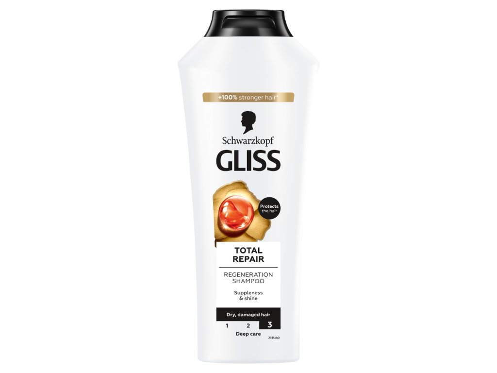 Gliss Kur Shampoo 400 ml Total Repair is a regenerating shampoo designed for dry and damaged hair. Its unique formula with 19 active ingredients, proteins and vitamins provides intensive care and restoration of the hair fiber.