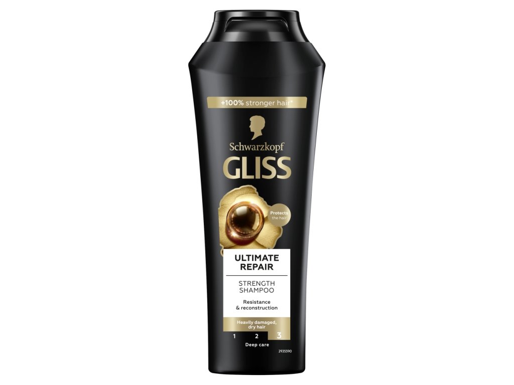 Gliss Kur Ultimate Repair shampoo with 3 times the concentration of liquid keratin complex regenerates even very damaged hair and specifically fills cracks in the hair fiber. The hair structure is restored and the hair gains greater resistance. Gliss Kur Ultimate Repair shampoo reduces hair breakage by up to 95% and gives the hair even more shine.
