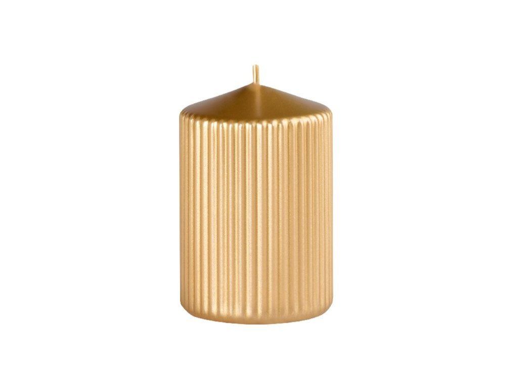 This fluted cylinder candle in metallic gold is an elegant addition to any table. Its dimensions are 65x100mm.Additional parameters