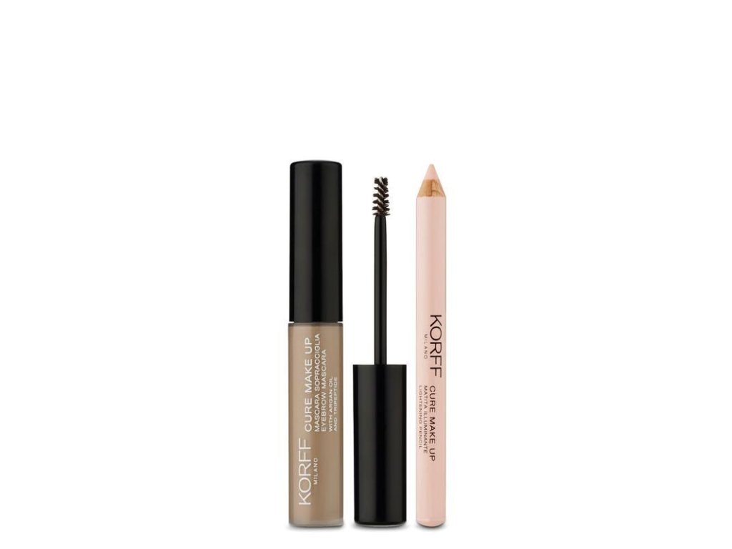 Perfect eye makeup EYEBROW MASCARA Colored mascara that defines and fixes eyebrows, in a very natural way. The special tripeptide included in the formula makes them thicker and denser and increases their area by + 38.3% * EFFECT: Argan oil makes eyebrows shiny and soft; The innovative brush releases the color evenly and uniformly, ensuring an extremely natural and precise result. TEXTURE: Soft and creamy. RESULT: Eyebrows are defined, thicker and stronger. BRIGHTENING PENCIL Pencil with a fine texture and a soft pink color suitable for all skin tones. Applied under the eyebrows, it defines and gives light to the eye.Additional parameters