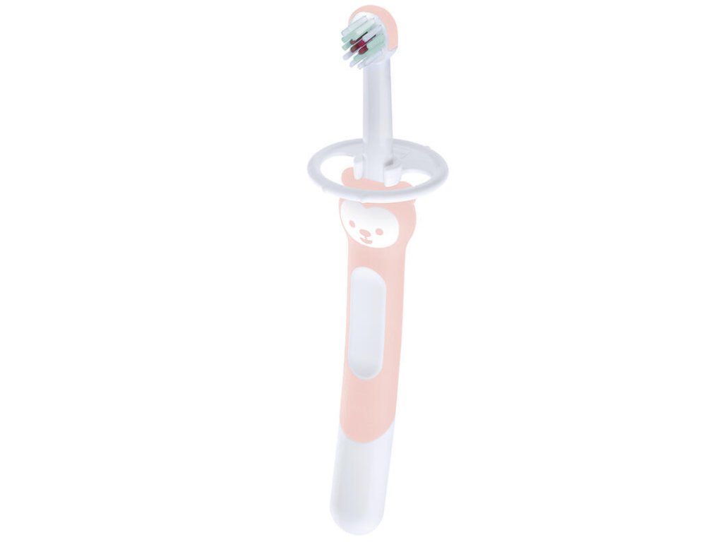 Extra long handle for shared brushing The MAM Training Brush children's toothbrush was developed with medical experts and can be used from the first tooth. MAM designers have made the handle of the Training Brush especially long and ergonomically shaped so that parents can hold it together with their child. This allows parents to show their children how to brush their teeth properly. The soft, rounded bristles clean the first teeth and remove plaque and bacteria. The red bristles indicate the recommended amount of toothpaste. The rounded brush head is perfect for small children's mouths. The safety guard helps keep the toothbrush at a safe distance from the back of the child's mouth.Additional parameters