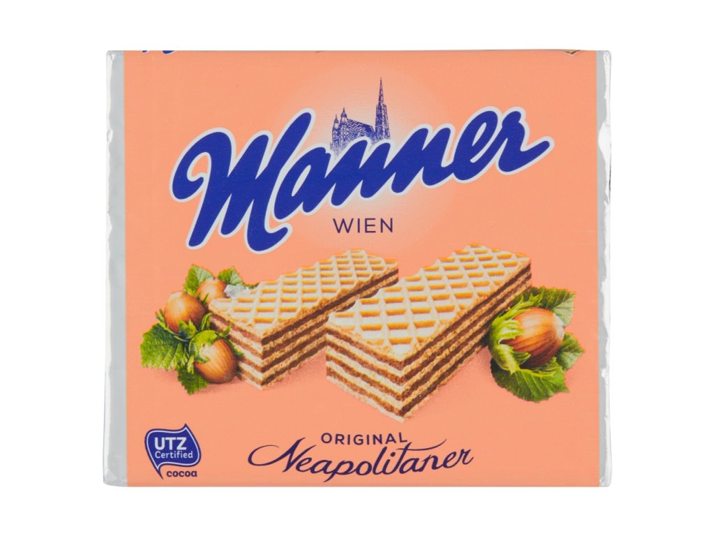 Manner wafers consist of five layers of delicate wafers filled with four layers of the finest creamy nut filling. The wafers are sized to fit just right in your mouth. The double aluminum foil with a red tear-off strip was introduced in the 1960s and keeps the classic product fresh and crispy even today.
