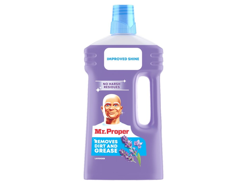 Mr. Proper Multi-Purpose Cleaner is great for cleaning almost any hard surface in your home. It's great for cleaning your kitchen sink, removing grease from your cooktop, and for mopping your regular floors. Mr. Proper Liquid Cleaner cuts through dirt and grease and, thanks to its plant-based formula (12% of all surfactants processed), leaves no streaks. Discover our best shine yet. With a beautiful fragrance, your home will smell wonderfully fresh with Lavender.
