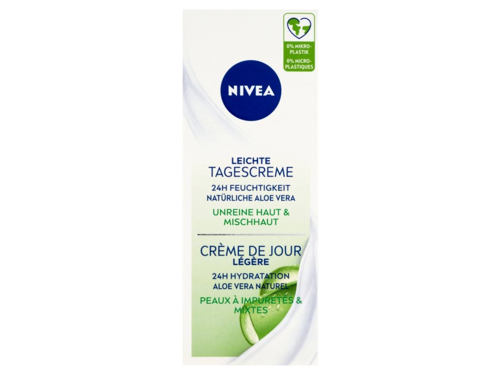 Nivea mattifying day cream suitable especially for combination skin has a valuable composition with a complex of natural aloe vera and minerals. Intensively moisturizes the skin for up to 24 hours and respects its natural level of hydration. Mattifies the skin, reduces sebum and reduces skin shine. for combination skin with a complex of aloe vera and minerals reduces sebum reduces skin shine