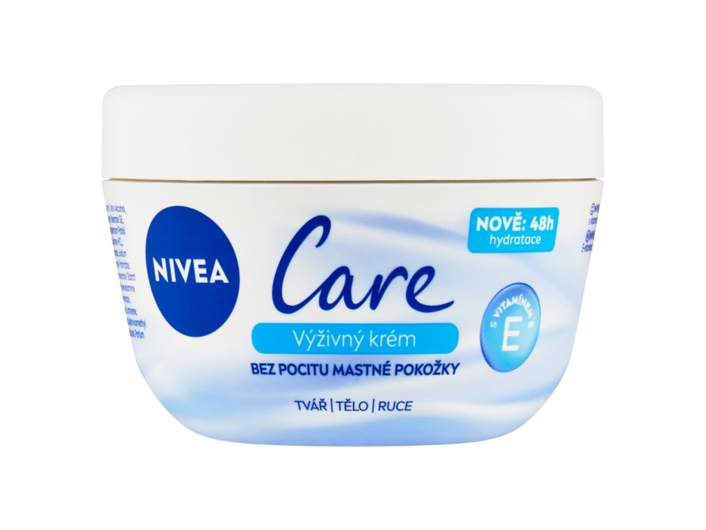 Forget about oily film, but also about dry skin. The nourishing formula with shea butter literally melts on the skin and provides it with intensive hydration and nourishment for 24 hours . It is quickly absorbed, has a beautiful, delicate scent and thanks to several practical packaging options it is always at hand when you need it. Get a practical large package for your bathroom - NIVEA Care Nourishing Cream, 200 ml .