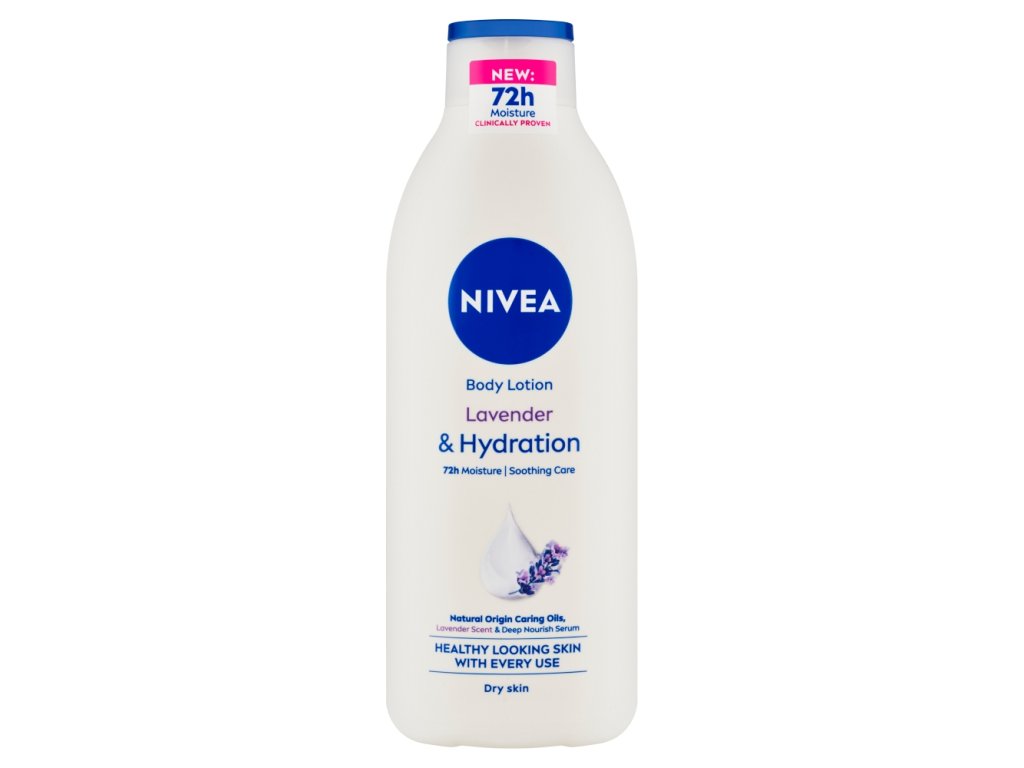 Nivea® Lavender Body Lotion for dry skin is enriched with Intensive Moisture Serum and natural oils for intensive care and hydration of the skin for 48 hours. The formula with a relaxing lavender scent is quickly absorbed and leaves the skin soft and soothed - after just the first use.