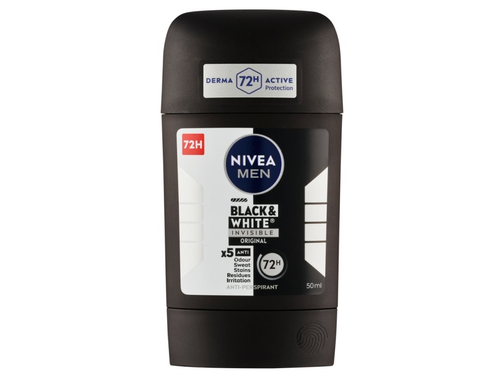 Meet the world leader in non-staining deodorants:** NIVEA MEN Invisible for Black & White antiperspirant stick for men. 48-hour effective protection against sweat with NIVEA care. Free of alcohol and dyes.