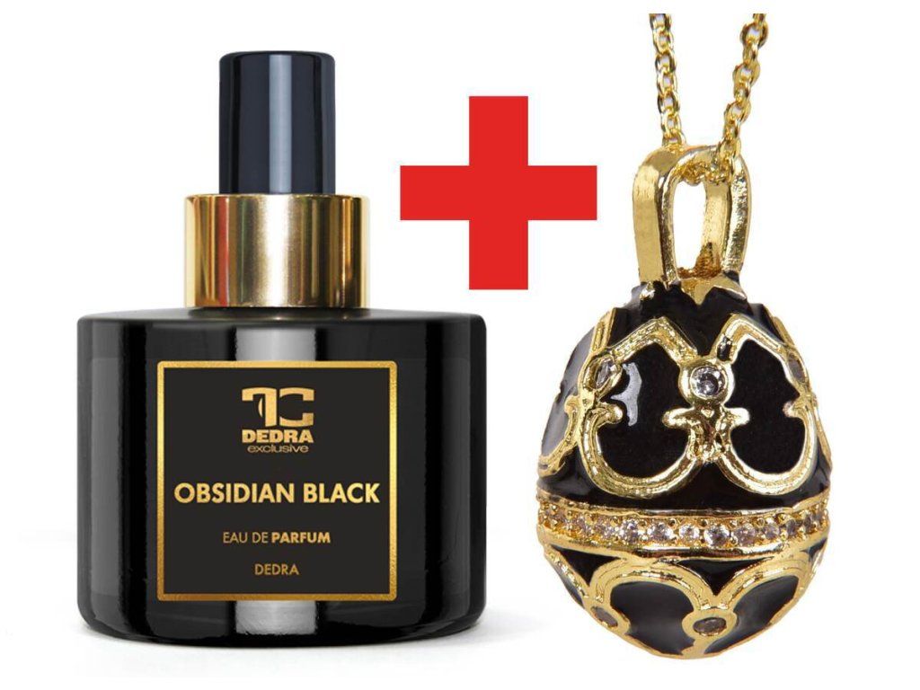 Embark on a journey of luxury and elegance with OBSIDIAN BLACK, the epitome of sophistication. This highly sophisticated perfume opens with a breathtaking harmony of ylang-ylang and fresh orange, delicately interwoven with notes of rose and lavender. In the heart and base, a deep composition of cedar, patchouli, vanilla and tonka develops, while guaiac wood and sensual musk leave an unforgettable signature. The package includes a gold-plated black egg-shaped necklace, decorated with precise details and sparkling stones - a piece of jewelry that will perfectly complement your personal aura. A fragrance for those who want to be unforgettable. Let OBSIDIAN BLACK embody your personal charm and turn every moment into a luxurious experience. Fragrance composition: Head: ylang-ylang, orange Heart: rose, lavender Base: cedar, patchouli, vanilla, tonka, guaiac wood, musk Package contents: Eau de Parfum OBSIDIAN BLACK 100 ml FREE gold-plated necklace in the shape of a black eggAdditional parameters