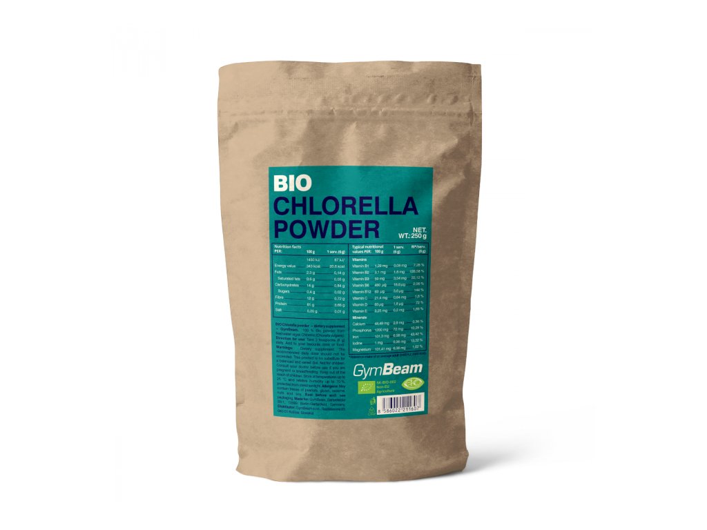 BIO Chlorella powder contains the popular freshwater algae chlorella (Chlorella vulgaris) , which is a source of valuable nutrients. This algae, for example, is one of the rare plant sources of vitamin D, B12 and iron. Vitamin B12 contributes to the reduction of tiredness and fatigue and, like iron, supports the normal formation of red blood cells. The contained vitamins B2 and B3 , in turn, help maintain the proper function of the nervous system, which controls the activity of all organs in the body. And last but not least, vitamin D supports the normal function of immunity and also contributes to maintaining healthy bones and teeth.