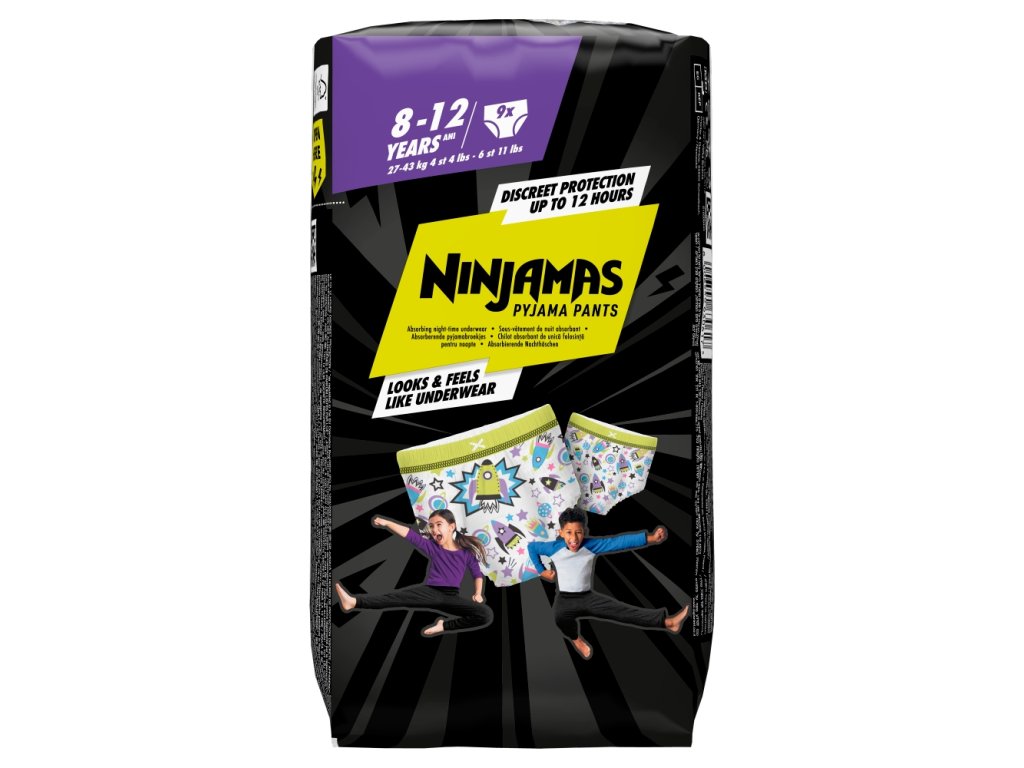 Ninjamas JP S7 are pajama night pants. The diaper pants absorb moisture instantly thanks to Instant Absorption technology for unprecedented effective protection. Thanks to the comfortable FormFit waistband, they adapt to the child's body to be discreet and fit comfortably like underwear. So children can wake up every day feeling great. The child's safety is a priority.