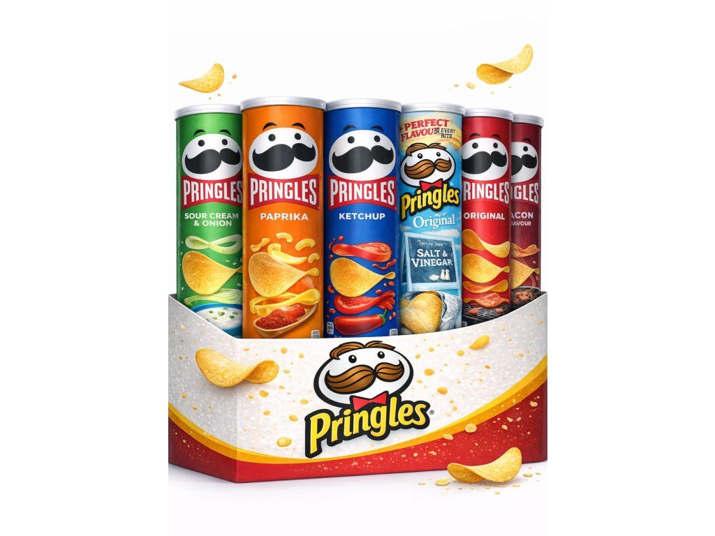Pringles Salt and Vinegar are popular potato chips with a distinctive, slightly sour and salty taste. Thanks to a unique manufacturing process, all chips have the same shape and are perfectly crispy. The practical tube packaging protects the chips from crushing and allows for easy storage and transport.