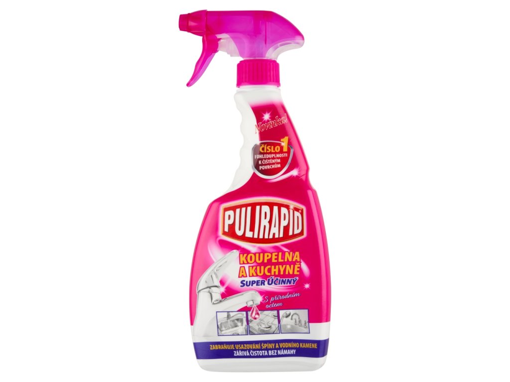 | Preparation and usage: | Instructions for use: turn the cap to the ON position. Spray onto the dirty surface and clean with a damp sponge. Rinse thoroughly immediately. Dry the cleaned surface after rinsing to improve the shine. To remove a thick layer of limescale, leave it to act for a few minutes (fizzing may occur), then rinse thoroughly immediately. Turn the cap to the OFF position. Do not use on marble, granite and other natural stones, colored laminates, warm surfaces or objects with anti-fingerprint treatment. For cleaning colored ceramics and enameled bathtubs, it is recommended to test the resistance of the material on a small hidden area by letting a few drops of Pulirapid act for a few minutes and if the material remains smooth and without opacity, you can continue cleaning. |