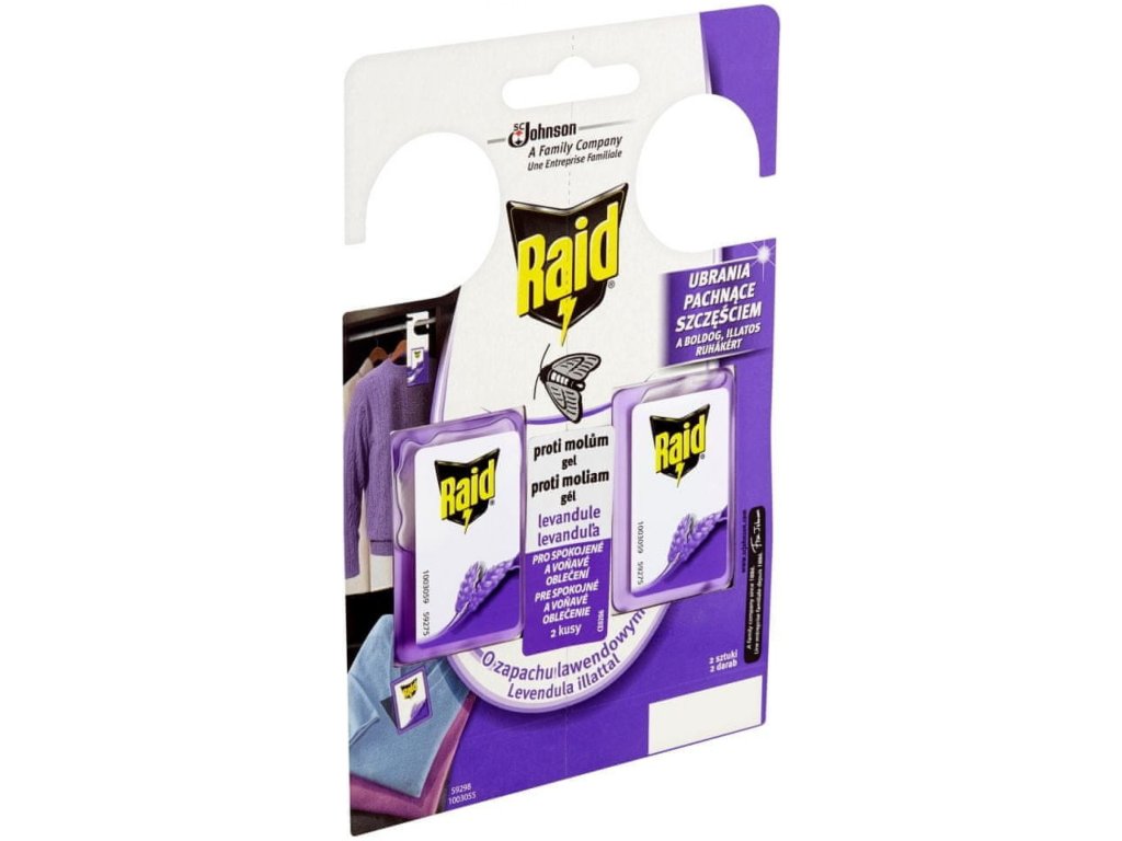 Repellent against clothes moths with natural lavender essential oil, leaves clothes pleasantly scented. The product is effective for up to 4 months. Instructions for use: Separate the bags from each other. Partially tear off the cardboard from the back of the bag. Remove the foil. Insert the handle of the bottom of the cardboard into the hole on the back of the bag. Hang the bags in a closet, place them in a drawer or on a shelf. Avoid direct contact of the semi-permeable membrane with clothes and plastic. Use 2 bags/0.5 m³ of space. At the beginning of the season, or if the gel dries out or the scent disappears, replace the product. The product is effective on the 3rd day after placement. Contains: Cinnamyl alcohol, citronellol, geraniol, citral, d-limonene, coumarin, 1-(2,6,6,–trimethyl-1-cyclohexen-1-yl)pent-1-en-3-one. May cause an allergic reaction. Warning: Active ingredient: 0.15 g transfluthrin in 100 g of product. Irritating to skin. Causes serious eye irritation. Very toxic to aquatic organisms, with long-term effects. Use as directed. Keep away from food, drink and animal feeding stuffs. Use only out of the reach of children and animals. Warning: Use biocidal products safely. Always read the label and product information before use.