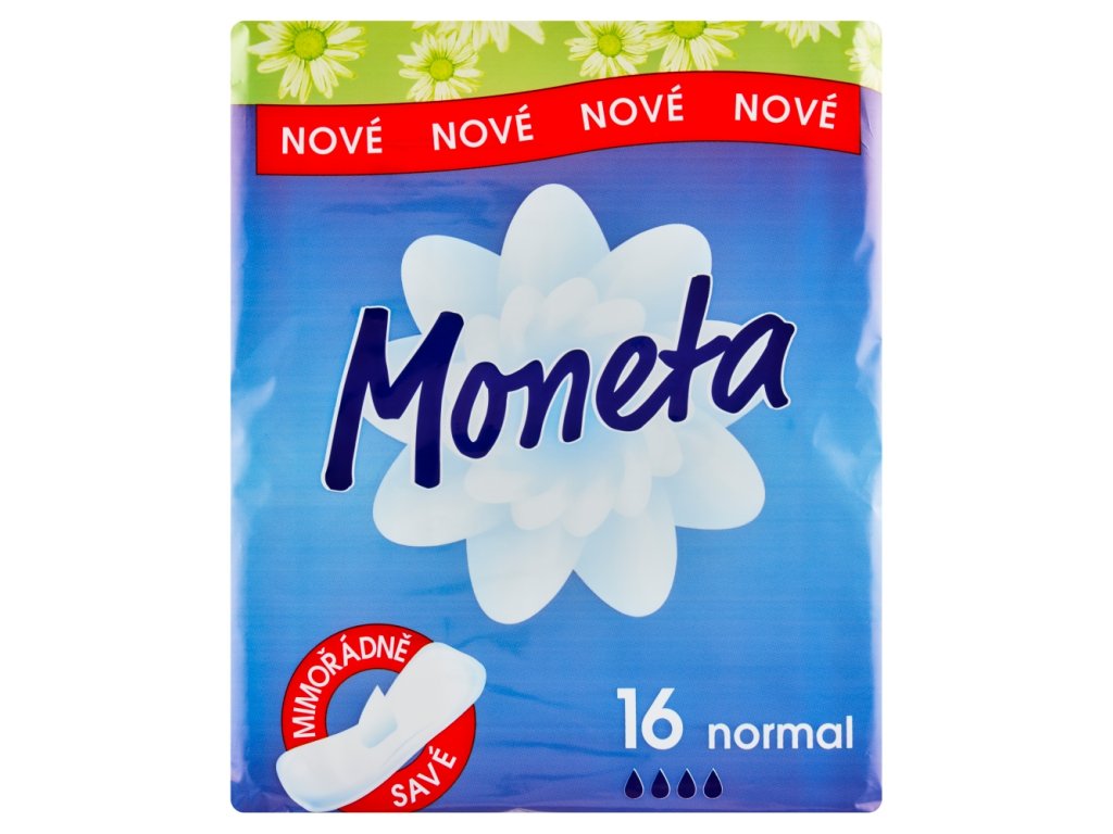 Moneta pads are classic feminine pads with a soft non-woven surface for normal and heavy menstruation. They are extremely safe with a profiled absorbent core and a wide adhesive surface for secure fixation. They are without wings.