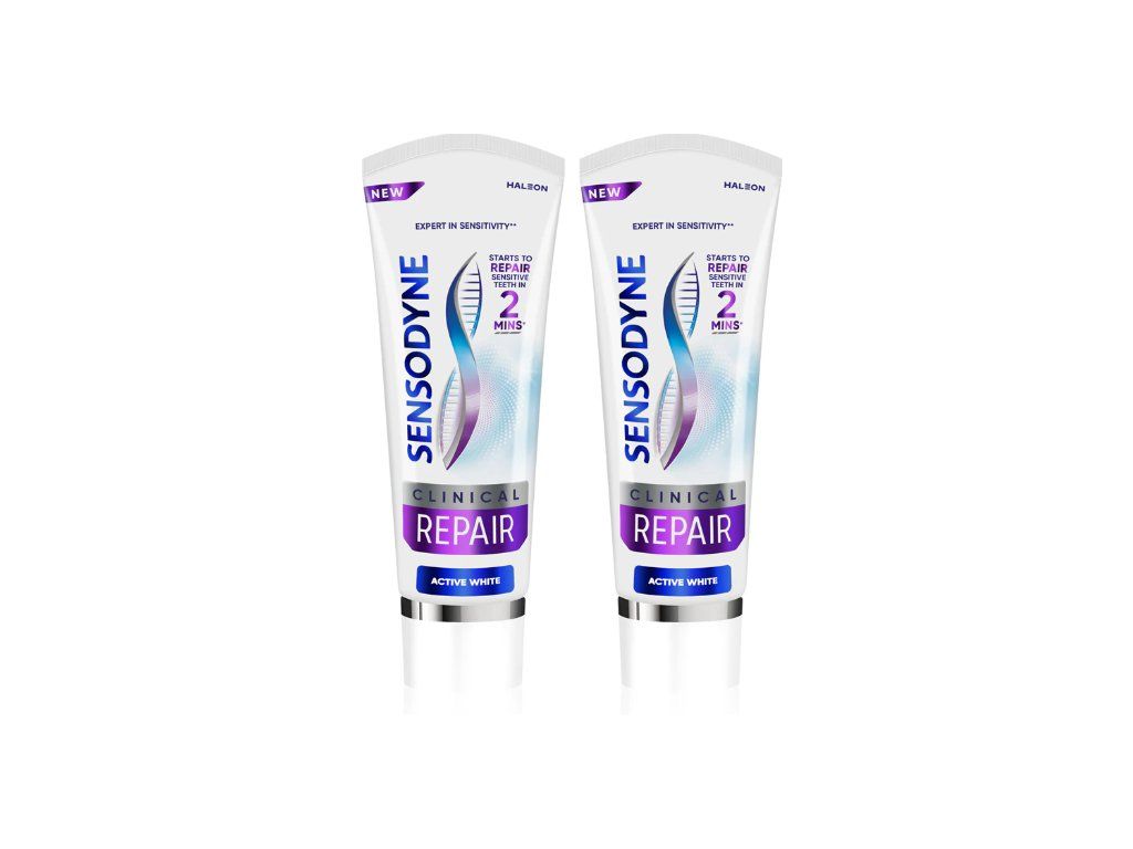 Sensodyne Clinical Repair Active White is a toothpaste designed for everyday care of sensitive teeth, combining advanced technology to repair sensitive areas with a gentle whitening effect. It contains the unique ingredient NovaMin (5%) which is activated during brushing and helps to create a protective mineral layer on weakened areas of the teeth, contributing to long-term relief from sensitivity.