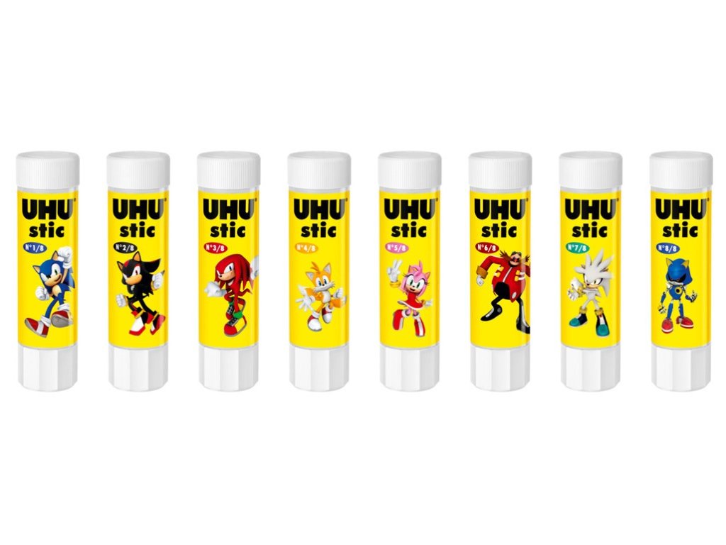 UHU stic 8.2g comes in a limited edition with popular Sonic motifs that will delight every fan - children and adults. The glue stick is made in Germany and offers strong, fast and clean bonding without solvents. Up to 98% of the composition consists of natural substances, including water. The packaging itself is up to 50% recyclable. In addition to its ecological composition, it also impresses with a practical screw cap that prevents drying out. The glue is easy to apply, cold washable and suitable for paper, cardboard, photographs, polystyrene and textiles. The perfect choice for school, for creativity and for everyday use at home. Product features: Collectible design with popular characters from the Sonic Movie Dermatologically tested - suitable for children Does not contain solvents - safe and gentle Screw cap to prevent drying out Packaging made from 50% recycled plastic - environmentally friendly Easy application - glides smoothly on paper and other surfaces Economical dosage - glue lasts a long time Quick drying and strong, durable adhesion Washable in cold water - no stains on clothesAdditional parameters