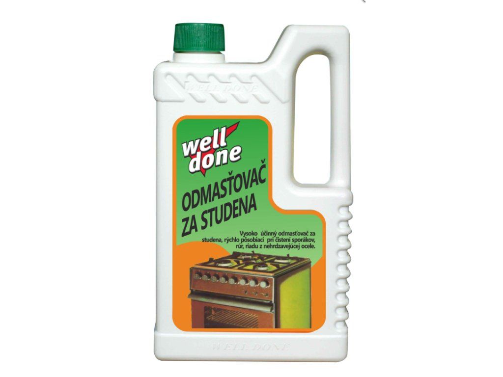 Well Done Cold Degreaser 1 l is an effective cleaning agent designed to remove greasy and oily dirt from various surfaces without the use of heat . It is designed for heavy and common dirt in the home, workshop, garage, premises and industrial environments. Thanks to its special formula, it effectively penetrates and dissolves grease, soot, oils and fats, which facilitates subsequent cleaning and leaves surfaces clean without any aggressive residues.
