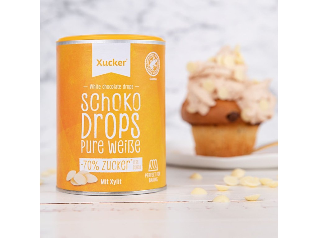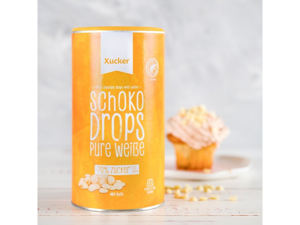 White Chocolate Drops are pieces of white chocolate with no added sugar , sweetened only with xylitol. The chocolate pieces are ideal for baking cookies, muffins, cakes, making chocolate icing, homemade muesli, but they are also suitable for flavoring porridge or yogurt.